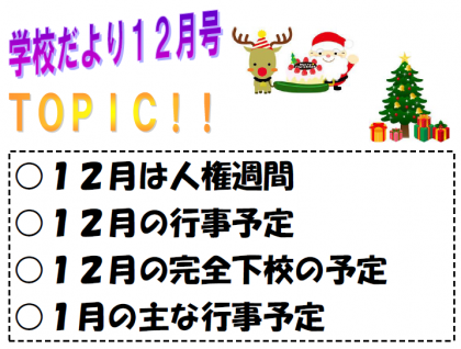 本日(12月2日),「うたのだより12月号」を家庭数で配布しました。
