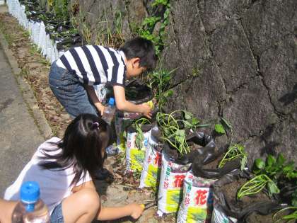 生活科の学習『ぐんぐんそだてみんなのやさい』で、夏野菜とさつまいもの苗を植えました。苗を一本一本しっかり観察して、自分の植木鉢には夏野菜を、土袋には、さつまいもを植えました。どんな風に大きく育っていくのか、とても楽しみです。ちなみに、宇多野校の今までの花壇では、夏場は日当たりが悪いので野菜には不向きでした。今年度は、プール横に新しい花壇を作ってもらったので、そこにも苗を植えました。