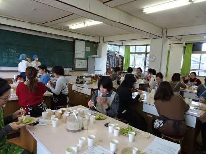 カモシカ食堂のシェフをお招きして,発酵食品について学びました。お味噌や甘酒,塩麹など,体によく安心できる食べ物を生活に取り入れたり,自分でつくったりできるといいですね。ちょっと試食させていただきましたが,甘酒ドレッシングをかけたサラダ,甘酒アイスなど本当においしかったです。子どもたちにもほっとできる健康的な「家庭の味」を教えてあげたいですね。参加された方も楽しそうに和気あいあいと過ごされていました。お忙しい中ですが,これを機にさらに「丁寧なくらし」を目指していけるといいなと思います。