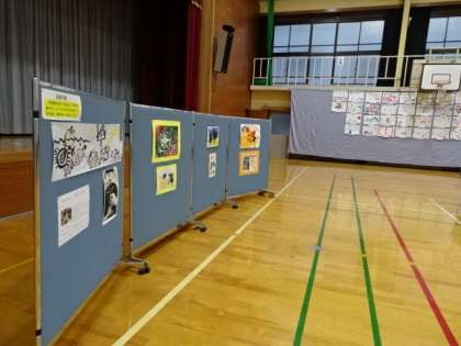 図工展では,学年で飾っている作品のほかに,放課後まなび教室でつくった作品や宇多野地域に住んでいる他の学校に通うお友達の作品を飾っています。