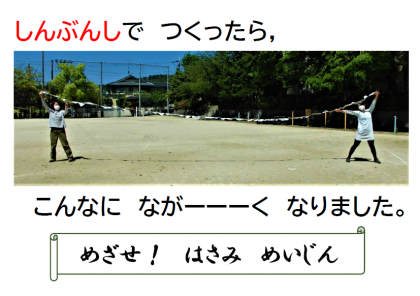 じょうずに はさみを つかって,だれが いちばん ながーーーく きれるか,かぞくと きょうそうしてみてね!