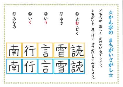 かん字の まちがいさがしです。