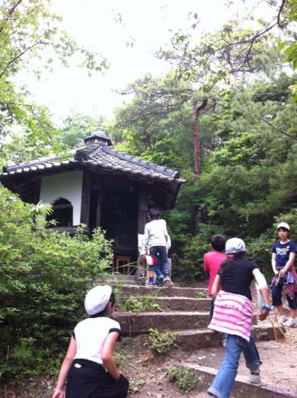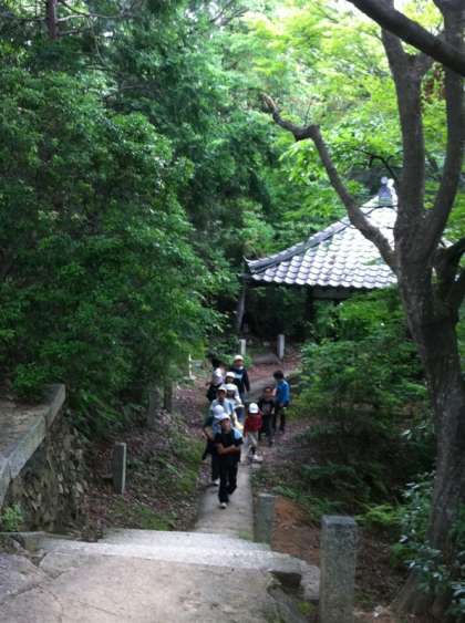 本校の歩こう会では登校グループのメンバーで御室八十八カ所巡りをします。