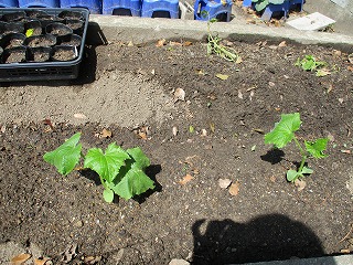 どんなふうにそだっていくのかな?楽しみですね。なすときゅうりのなえも植えました。お日さまがしっかり当たるので水やりを頑張りましょうね。