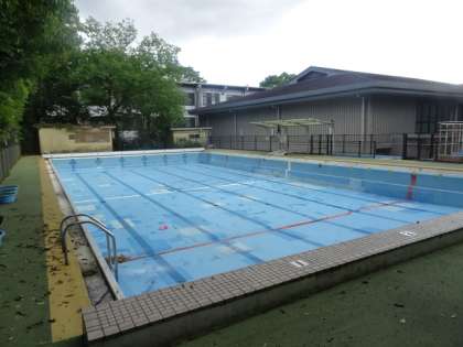 左側に見えるたらいには,プールの水を残して置いています。いつも産卵に来るモリアオガエルが来てくれたらいいのですが。