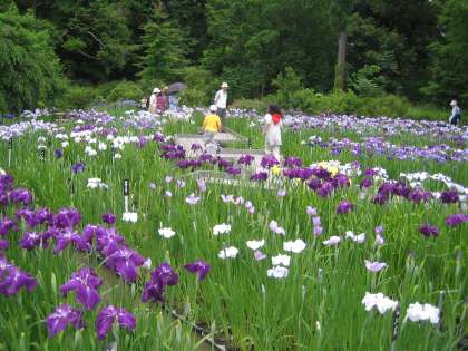 今の季節は薔薇や菖蒲の花が色とりどりに咲き乱れ,とても綺麗でした。