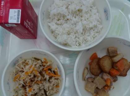 今日は隔日登校のため,2名だけでしたが,しっかりと給食の準備をしておいしく給食をいただきました。