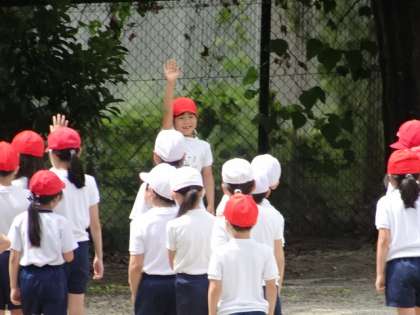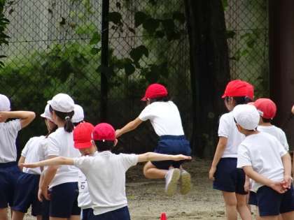 自分が跳んだら,友達の方を向き,「跳んでいいよー」「いきまーす」と合図を送ります。次の友達は,安心してチャレンジしていました。