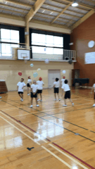 頭や肩,足など体の様々な部分を使って,風船を落とさないように頑張っていました。