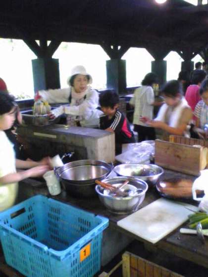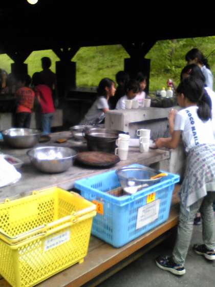 おいしい夜ご飯に向けて野外炊事が始まりました。