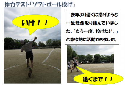 2日(木)に体力テストのソフトボール投げをしました。