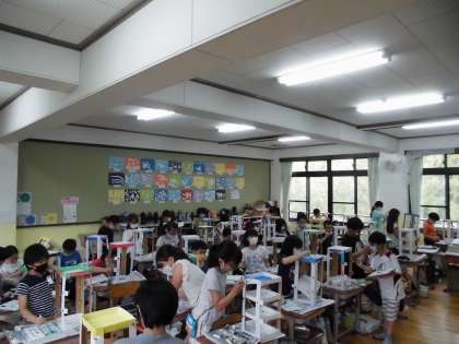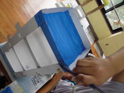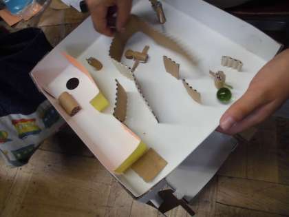 「どんな迷路にしようかな」とビー玉が転がるところをイメージしながら黙々と作業をしていました。どんな作品になるのか楽しみです。