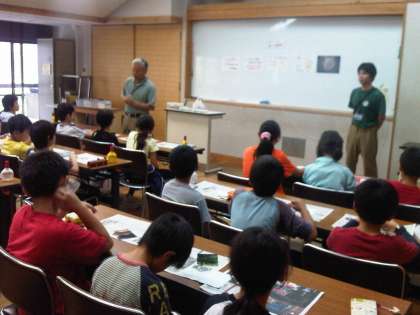 森の動物キーホルダー作りです。枝を輪切りにしたものを大小組み合わせて熊の顔にします。この5日間の思い出をこめて作ります。