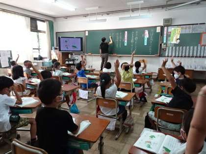「お」のつく言葉は?とたずねると,子どもたちは,