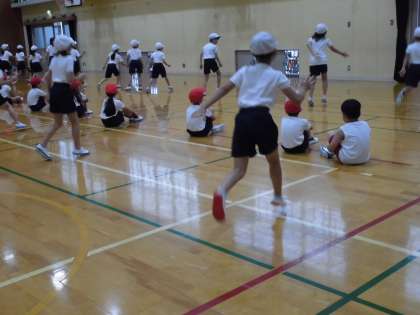 「うたの2020」に向けてダンスの練習に熱中する2年生。振りをしっかり覚えて,リズムに乗ってダンスの世界に浸っています。