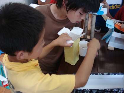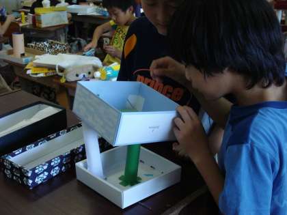 どうしたらうまく転がるだろうか、楽しいしかけにするには・・・と試行錯誤をくり返しながら作っています。