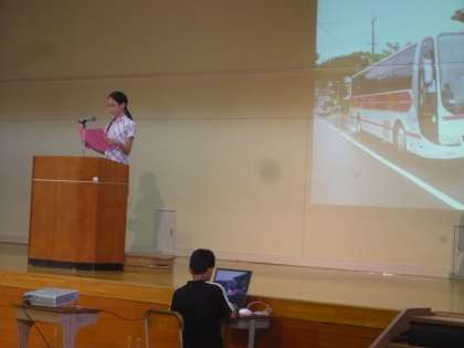 1日(金)のうたのタイムは6年生の発表でした。6年生からは、修学旅行の作文を発表しました。旅先での新しい発見や友だちと過ごしたこと、団体行動での学びや反省などさまざまな思いをこめた作文を発表してくれました。思い出の写真をスクリーンで映しながらの発表に他の学年の子どもたちも真剣に聞いてくれました。1年生から「名古屋城はでかいですか」という質問も受け「でかかったです」と答えてくれました。事前に学習もしたこともあり、名古屋のことはとても詳しくなった6年生です。