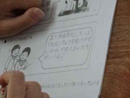保健で「飲酒の害」について学習しました。飲酒によってどんな心身の影響があるのか学び,お酒を勧められたときの断り方も考えてみました。