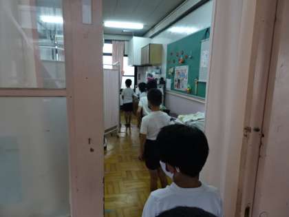 ソーシャルディスタンスをとり,検診を受けました。一人ずつ中に入って学校医さんに診ていただきました。少し緊張しましたが,上手に受けられました。