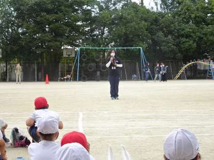 次は宇多野名物ドラえもん体操をするために,2年生が位置を示してくれました。