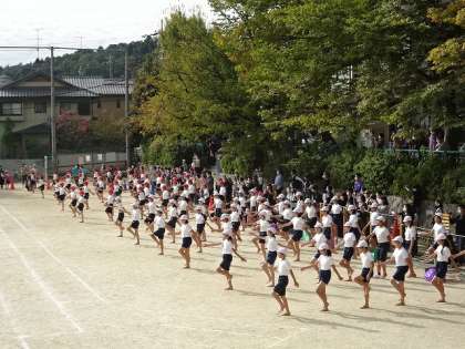 次は団体行動です。お友達がむこうから背中を伸ばして,立派に歩いてきます。ぶつからないように上手にすれ違いました。
