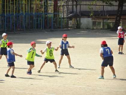 ボールマンやガードマンなどの役割を決めて,ルールにのっとりゲームを進めます。白熱してみんなよく動いており,楽しそうでした。