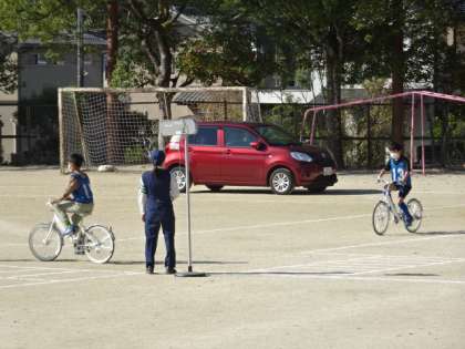さわやかな良いお天気で自転車教室日和となりました。実技と学科で自転車の扱い方や交通ルールを学びました。