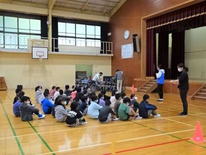車いすに乗ることが初めての子が多く,また,介助の時にどんな声かけをすれば相手が安心してくれるのかを考えながら声をかけましたが,声が小さくなってしまいました。乗る方も介助する方も怖々でしたが,貴重な体験ができました。この体験をもとに子どもたちで話し合い,気をつけることや声のかけ方などを勉強できたらと思います。