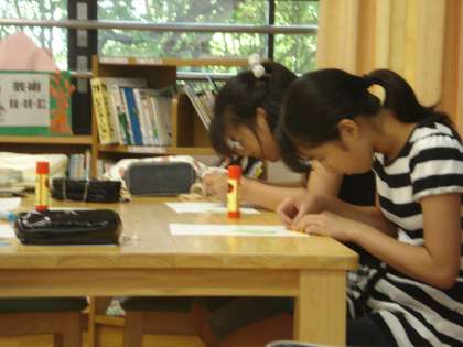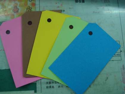 お楽しみでは、「ホロスペックス」というライトに当てて見るとかわいい模様が浮かんで見えるフイルムを使ってのカードを作りました。友だちの分や家族の分も作って喜んで帰っていました。