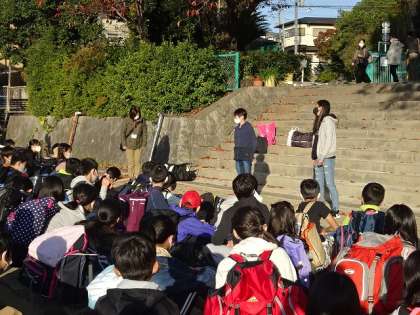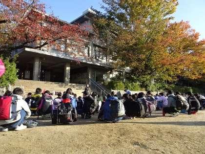 出発式をして学校を出ました。このあと,バスに乗って姫路城を目指します。