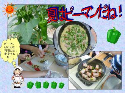 6年生の最後のクラス6年3組も,グループごとにピーマン料理を考えて実習しました。今までにない,味噌を使った和風の新しいメニューも加わり,ごはんがすすむ一品でした。学校では,生の肉や魚が使えない食材の制限のある中で,6年の3クラスとも多様なピーマン料理を考え,料理にチャレンジしてくれました。すばらしいピーマン料理が毎日出来上がり,楽しく,有意義な実習を終えることができました。これからも,料理を楽しみ,美味しく食べて,生きる力につなげてほしいと思っています。