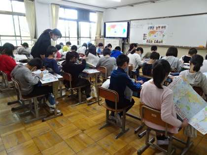 5年生の参観授業は,社会でした。地図などの資料を使い,調べ方を学びました。見ていただき,ありがとうございました。