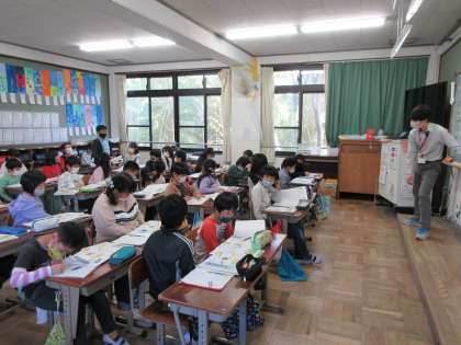 社会科の学習をしました。地図帳を見て,「りんごの生産量が1位の都道府県は?」等,日本の中でのナンバー1を探しました。