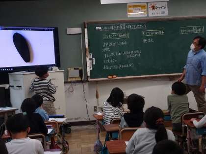 ヒマワリやホウセンカのタネを比べました。それぞれ形がちがうのが不思議ですね。ヒマワリの種にしま模様がついていることを見つけていました。