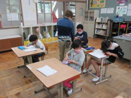 平仮名やカタカナ,漢字の書きとりに集中して取り組んでいました。