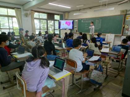 外国語の「This is me.」の学習では,名前,好きなこと,得意なことをGIGA端末を使い,英語でしゃべって自己紹介をしました。