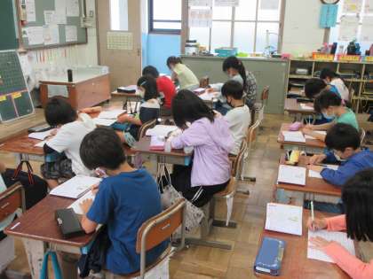 今日の3年生は,漢字ドリルのテストに取り組んでいました。
