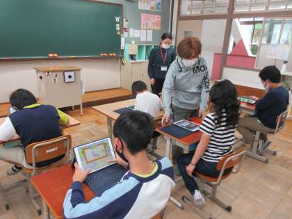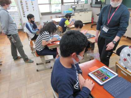 絵を見てひらがなやカタカナで答えたり,たし算やかけ算の問題に答えたりするアプリを使って学習しました。