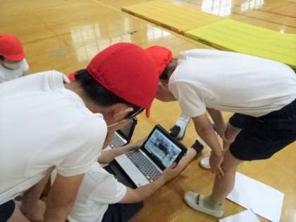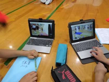 5年生 タブレットで自分の技を確認!