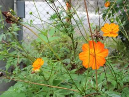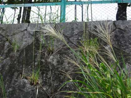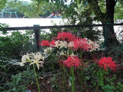 あざやかな秋となりました。登校の道の途中に斑入りのススキが生えています。花道には赤白のヒガンバナ,正門横にはオレンジのコスモス,たくさんの秋に囲まれた宇多野です。