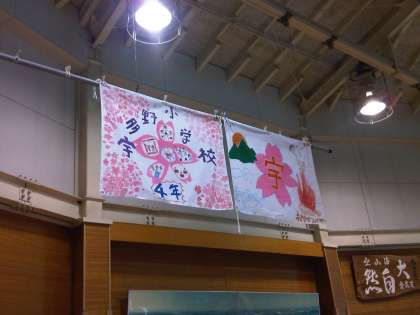 野外炊事場でお弁当を食べた後,いよいよ入所式です。