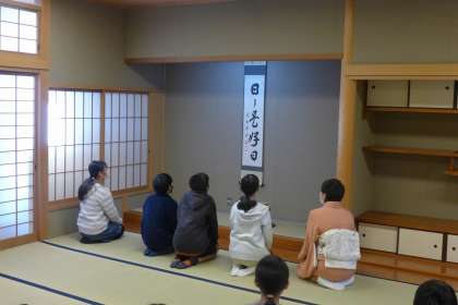 礼の仕方を学び,掛け軸を見ました。掛け軸には,「日々是好日」とあり,その意味を考えていました。