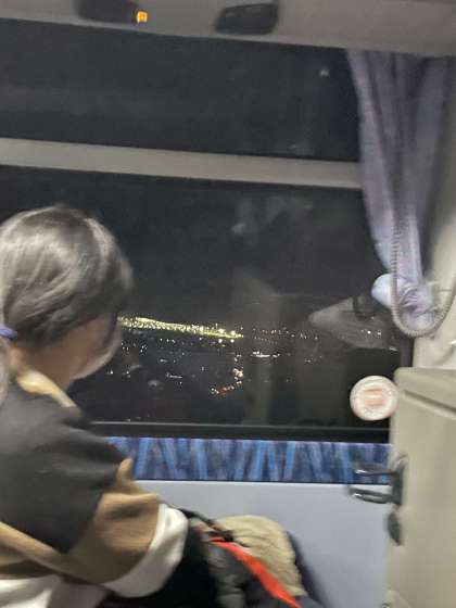 五色台に向かう途中,夜景がきれいで拍手が起こりました。