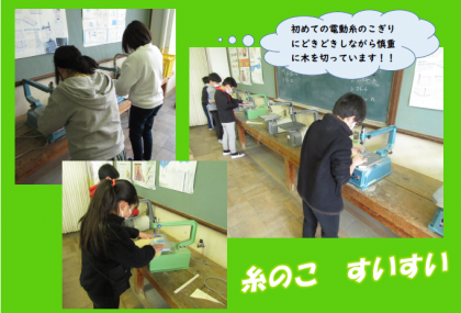図工の学習で初めての電動糸のこぎりに挑戦しています。どんな作品が仕上がるか楽しみです。