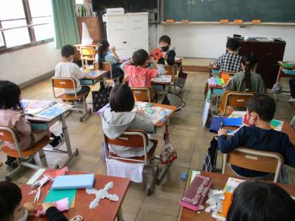 みんながつくったかわいい飾りで教室がいっぱいになりました。
