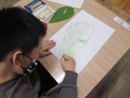 校庭にある葉っぱを一枚選びデッサンをしました。