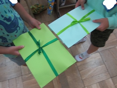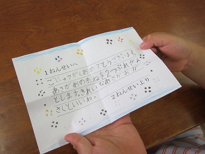 1年生は,心のこもったすてきなプレゼントを見てとてもよろこんでいました。
