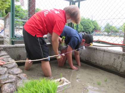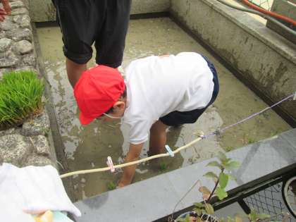 田んぼで田植えをしました。