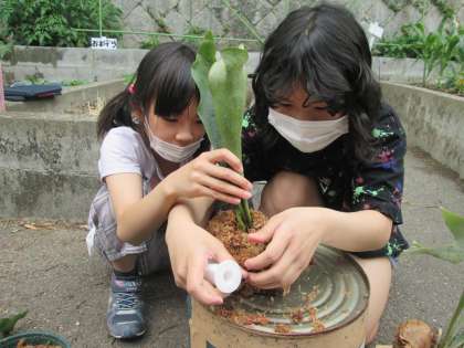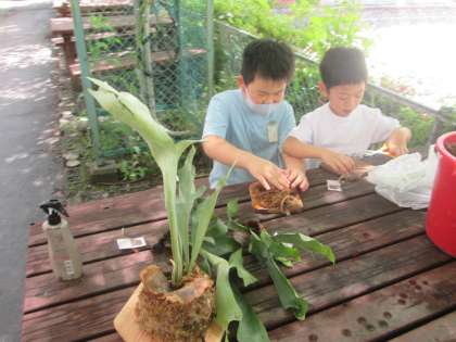 巻き付けた後は,葉っぱの様子などを観察することができました。