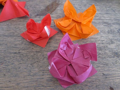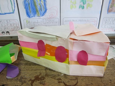 休み時間の教室の一角に,子どもたちが集まっており紙をしています。最初は得意な人が折っていたのですが,友だち同士で折り方を教え合って,今では,おり紙名人が教室にたくさんいます。おり紙を貼りあわせて合同で作品を作る子どもたちもいます。「どうやっておるの?」,「あっ!僕もできたよ。」,「次は小さいおり紙で折ってみよう。」,「ここは,こんな形にしよう。」など,楽しみながらチャレンジする様子が,とてもすてきです。